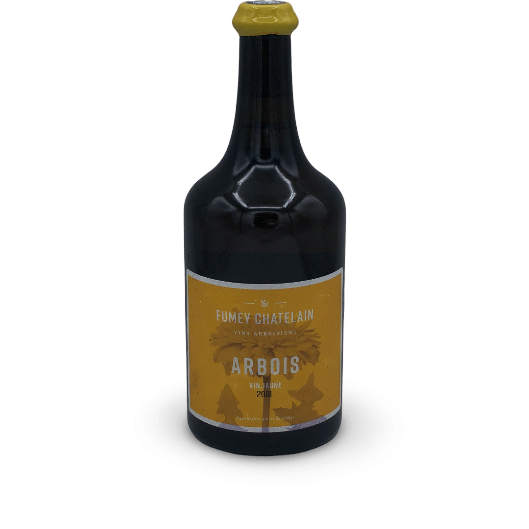 Découvrez le Jura Fumey-Chatelain Arbois Vin Jaune 2017 : un vin de collection puissant aux notes de noix et mandarine confite, idéal pour savourer avec des fromages affinés.