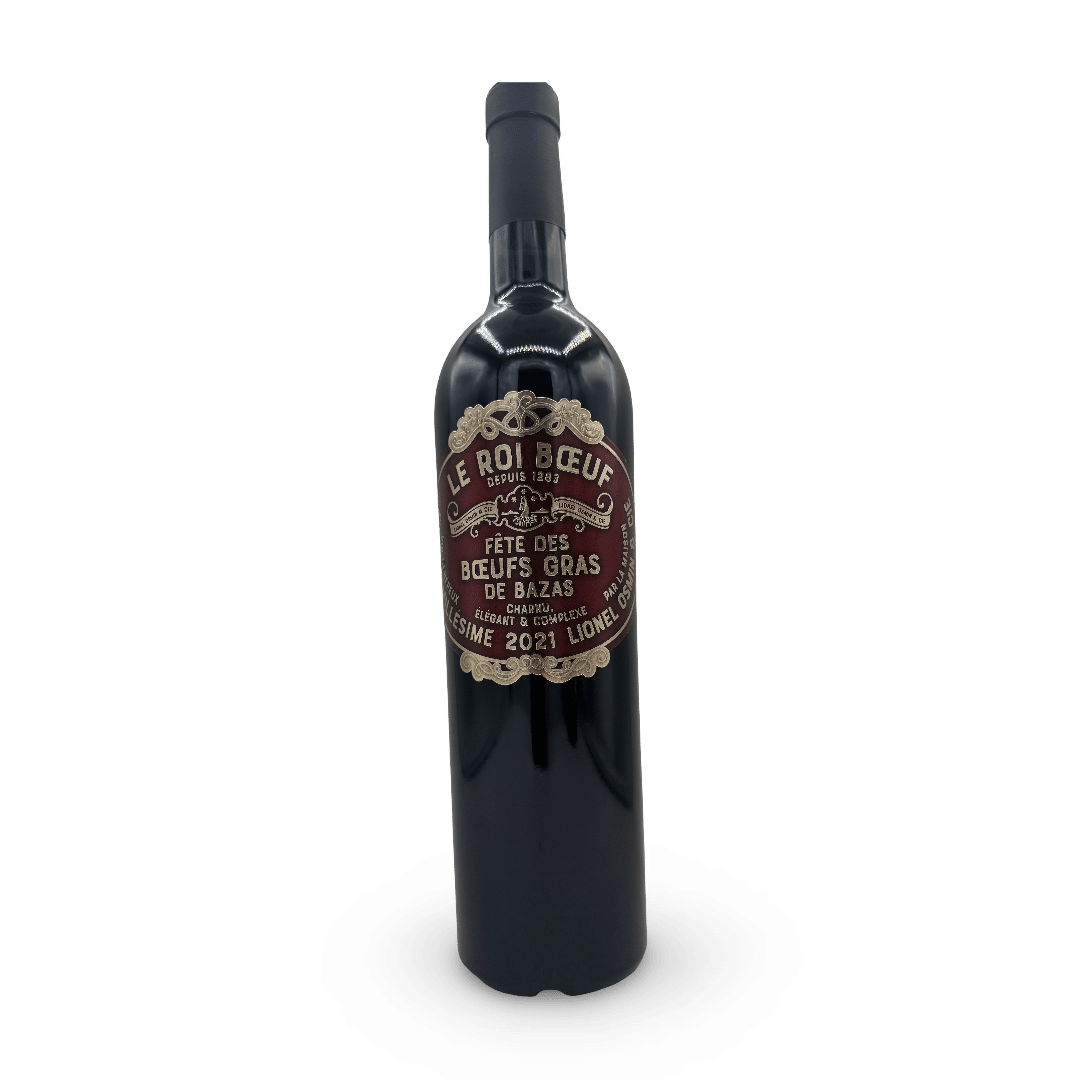 Découvrez Le Roi Bœuf Bazas 2021 de Lionel Osmin. Un rouge du Sud-Ouest robuste et souple aux notes de fruits noirs et de sous-bois. Le compagnon ultime de votre côte de bœuf !