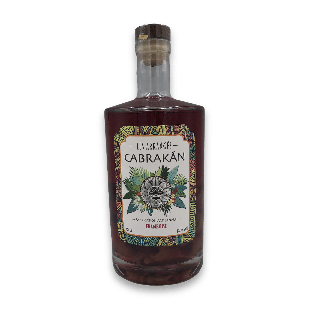 Découvrez le Rhum Arrangés Cabrakán Framboise, un spiritueux fruité et gourmand à base de framboises fraîches et rhum de Guadeloupe, idéal à savourer pur ou en apéritif !