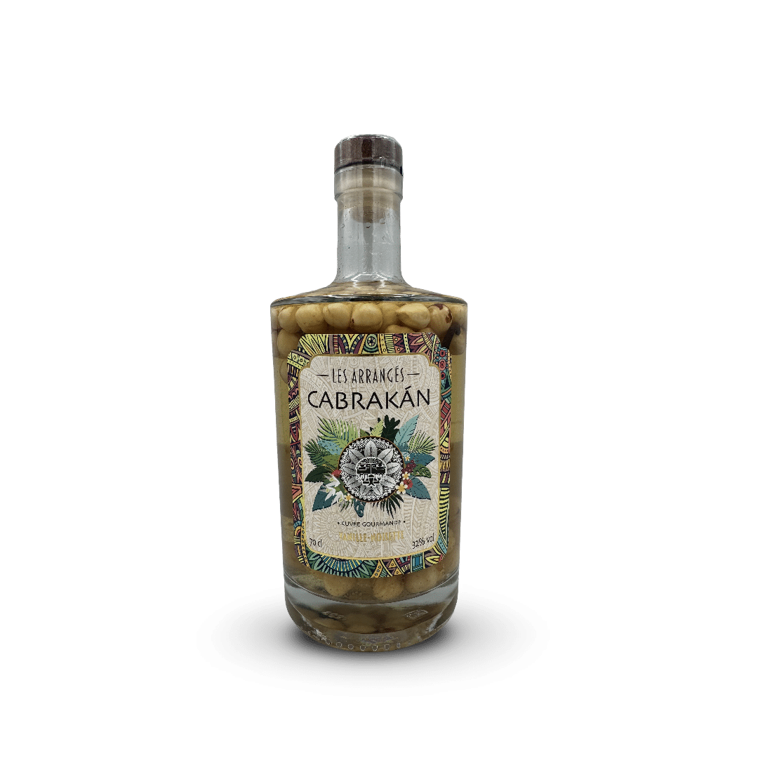 Découvrez le Rhum Arrangé Cabrakan Vanille Noisette, alliance gourmande de vanille Bourbon et de noisette torréfiée. Un délice onctueux à savourer pur ou en cocktail festif !
